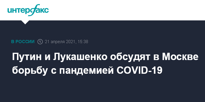 Путин и Лукашенко обсудят в Москве борьбу с пандемией COVID-19