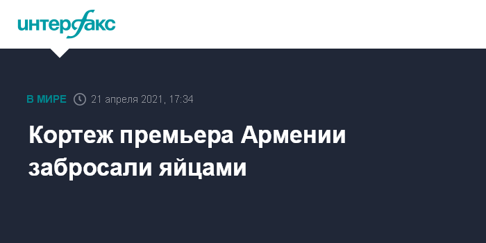 Москва. 21 апреля. INTERFAX.RU - Кортеж премьера Армении Никола Пашиняна забросали яйцами его противники в общине Шурнух Сюникской области.
