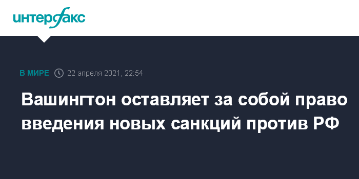 Москва. 22 апреля. INTERFAX.RU - США сохраняют за собой право введения новых санкций против России, заявила пресс-секретарь Белого дома Дженнифер Псаки.