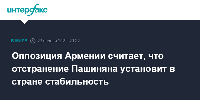 Оппозиция Армении считает, что отстранение Пашиняна установит в стране стабильность