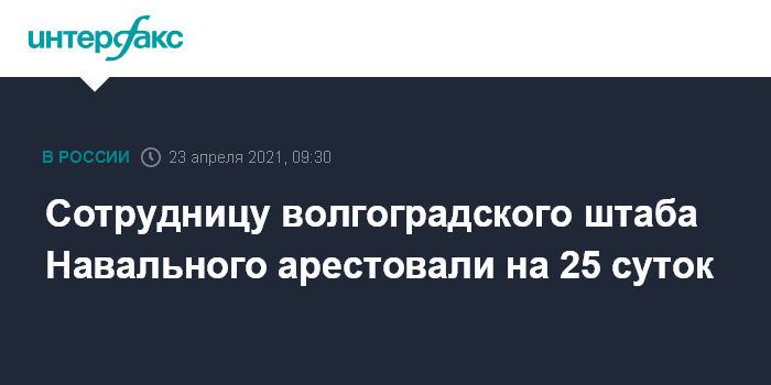 Москва. 23 апреля. INTERFAX.RU - Центральный суд Волгограда арестовал на 25 суток сотрудницу местного штаба оппозиционера Алексея Навального за организацию несанкционированной акции, сообщает объединенная пресс-служба судов региона.