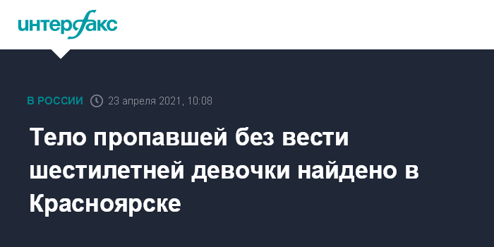 Тело пропавшей без вести шестилетней девочки найдено в Красноярске
