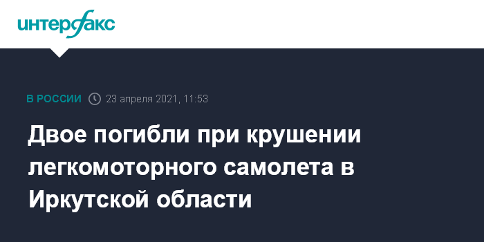 Москва. 23 апреля. INTERFAX.RU - Два человека погибли при крушении в пятницу легкомоторного самолета в Черемховском районе Иркутской области, сообщили "Интерфаксу" в пресс-службе Восточно-Сибирского следственного управления на транспорте Следственного комитета России.