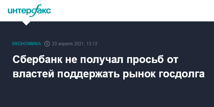 Сбербанк не получал просьб от властей поддержать рынок госдолга