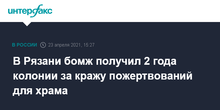 В Рязани бомж получил 2 года колонии за кражу пожертвований для храма