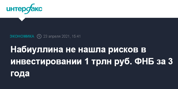 Москва. 23 апреля. INTERFAX.RU - Планы правительства РФ по инвестированию средств ФНБ в изначально заявленных объемах не несет значимых инфляционных рисков, заявила глава ЦБ Эльвира Набиуллина на брифинге в пятницу.