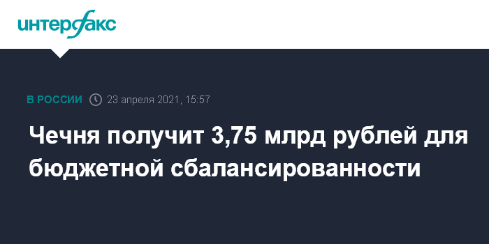 Москва. 23 апреля. INTERFAX.RU - Правительство России выделит Чечне 3,75 млрд рублей на обеспечение бюджетной сбалансированности, заявил премьер РФ Михаил Мишустин. Об этом он рассказал на встрече с главой республики Рамзаном Кадыровым.