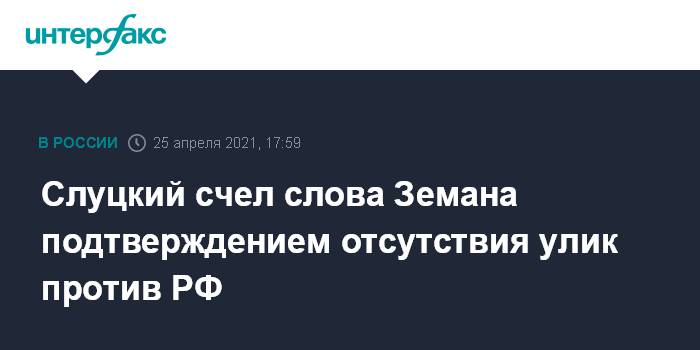Слуцкий счел слова Земана подтверждением отсутствия улик против РФ