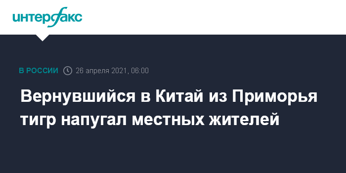 Вернувшийся в Китай из Приморья тигр напугал местных жителей