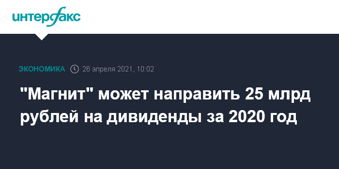 "Магнит" может направить 25 млрд рублей на дивиденды за 2020 год