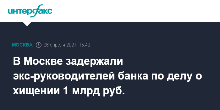 Москва. 26 апреля. INTERFAX.RU - Столичные полицейские задержали бывших руководителей одного из коммерческих банков, подозреваемых в хищении более миллиарда рублей клиентских денег, сообщила официальный представитель МВД России Ирина Волк.