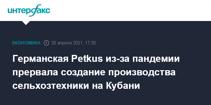 Германская Petkus из-за пандемии прервала создание производства сельхозтехники на Кубани