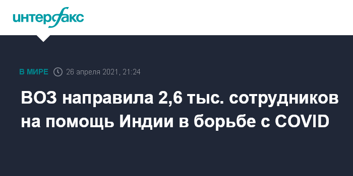 По словам главы ВОЗ Тедроса Адханома Гебрейесуса, эти сотрудники помогут индийским коллегам, давая технические консультации и оказывая помощь при вакцинации и мониторинге.
