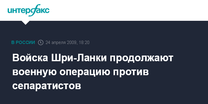 Лондон. 24 апреля. INTERFAX.RU - Вооруженные силы Шри-Ланки заявляют, что не будут останавливать военную операцию против боевиков движения "Тигры освобождения Тамил-Илама" (ТОТИ) на севере страны, сообщает британская телерадиокоропрация BBC.