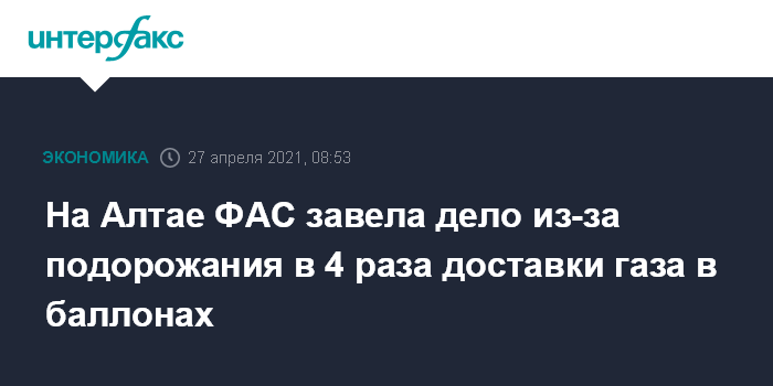 Москва. 27 апреля. INTERFAX.RU - Управление ФАС России по Алтайскому краю заподозрило ОАО "Алтайкрайгазсервис" (MOEX: AKGS) в завышении цен на доставку потребителям сжиженного углеводородного газа (СУГ) в баллонах, сообщил замглавы управления ФАС России по Алтайскому краю Сергей Скорик журналистам во вторник.