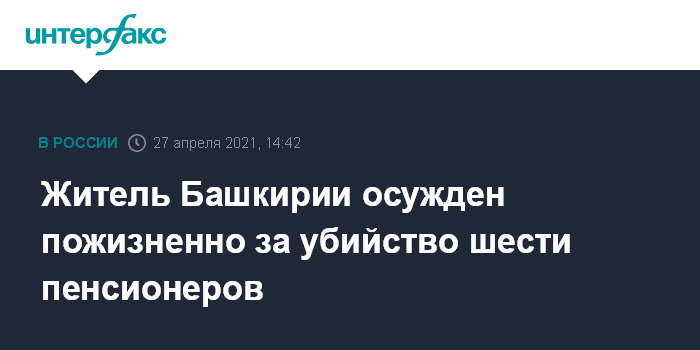 Житель Башкирии осужден пожизненно за убийство шести пенсионеров