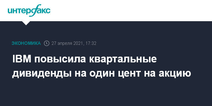 Москва. 27 апреля. INTERFAX.RU - Американская International Business Machines, один из крупнейших мировых поставщиков компьютерных услуг, сообщила, что повысила квартальные дивиденды до $1,64 на акцию с $1,63, то есть на 0,6%.
