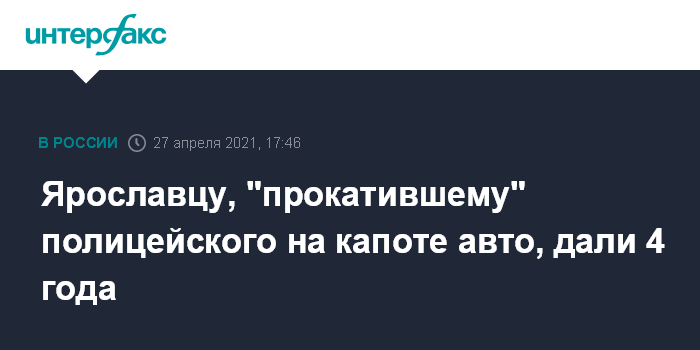 Ярославцу, "прокатившему" полицейского на капоте авто, дали 4 года