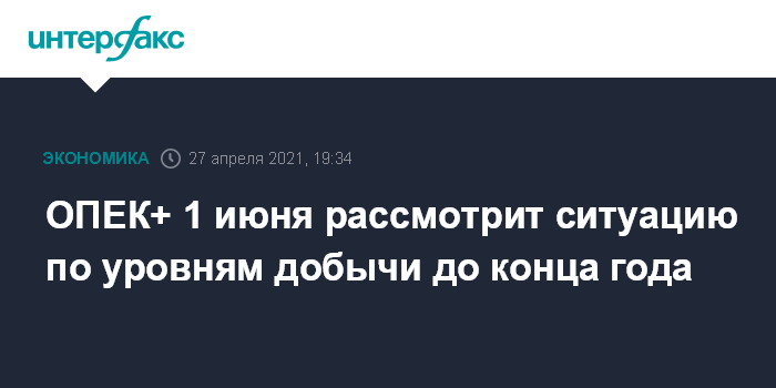 ОПЕК+ 1 июня рассмотрит ситуацию по уровням добычи до конца года