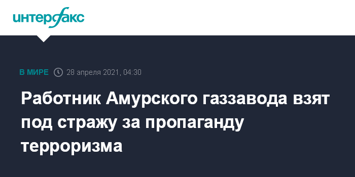 Работник Амурского газзавода взят под стражу за пропаганду терроризма