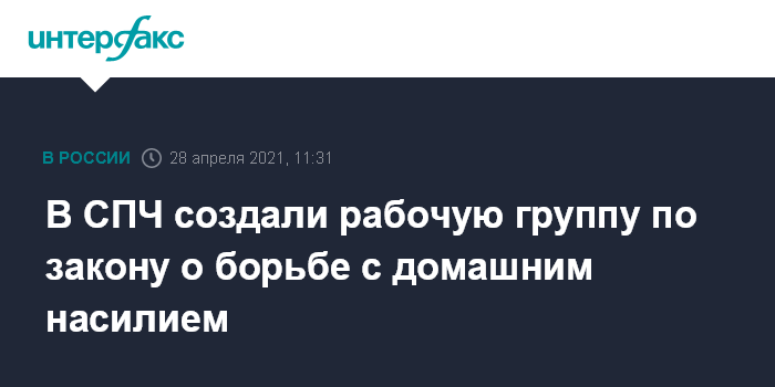 Москва. 28 апреля. INTERFAX.RU - Совет при президенте РФ по развитию гражданского общества и правам человека (СПЧ) создал рабочую группу для совершенствования закона о борьбе с домашним насилием. Об этом рассказала председатель постоянной комиссии по личным правам СПЧ Татьяна Мерзлякова.
