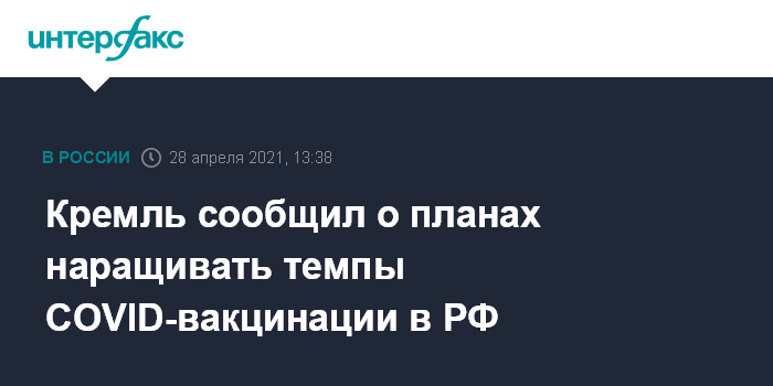 Москва. 28 апреля. INTERFAX.RU - В Кремле заявили о планируемом наращивании темпов вакцинации от коронавируса в России.