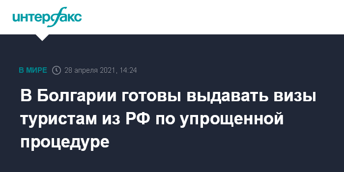 Москва. 28 апреля. INTERFAX.RU - МИД Болгарии готов начать выдавать туристические визы гражданам России по максимальной упрощенной процедуре, сообщила глава министерства Екатерина Захариева.