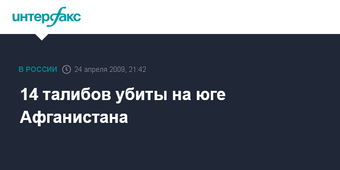 Кабул. 24 апреля. INTERFAX.RU - Не менее 14 предполагаемых боевиков движения "Талибан" были убиты в результате двух бомбардировок авиации США на юге Афганистана, сообщило в пятницу агентство ЭФЭ со ссылкой на заявление американского командования.