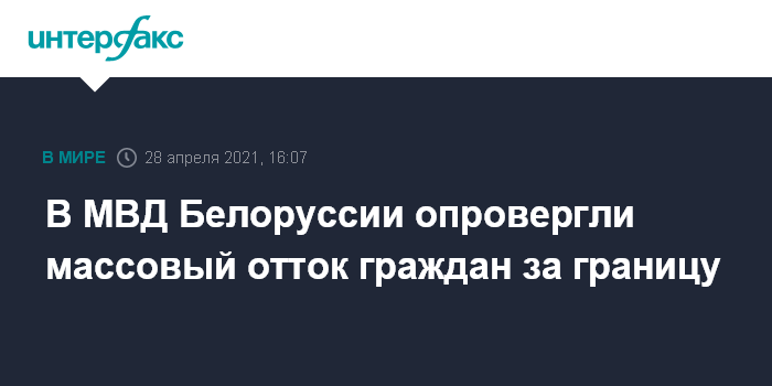 Москва. 28 апреля. INTERFAX.RU - Массового оттока белорусов за границу нет, заявляет начальник Департамента по гражданству и миграции МВД Белоруссии Алексей Бегун.