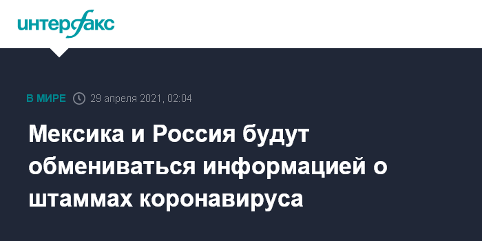 Мексика и Россия будут обмениваться информацией о штаммах коронавируса