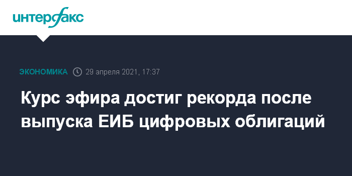 Курс эфира достиг рекорда после выпуска ЕИБ цифровых облигаций