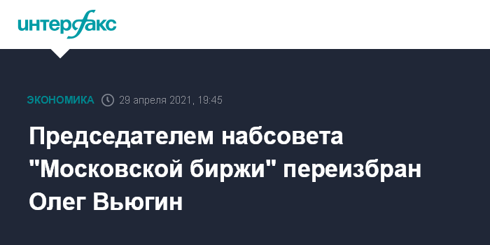 Москва. 29 апреля. INTERFAX.RU - Председателем наблюдательного совета "Московской биржи" четвертый год подряд избран профессор департамента финансов факультета экономических наук НИУ "Высшая школа экономики" (ВШЭ) Олег Вьюгин, следует из сообщения биржи.