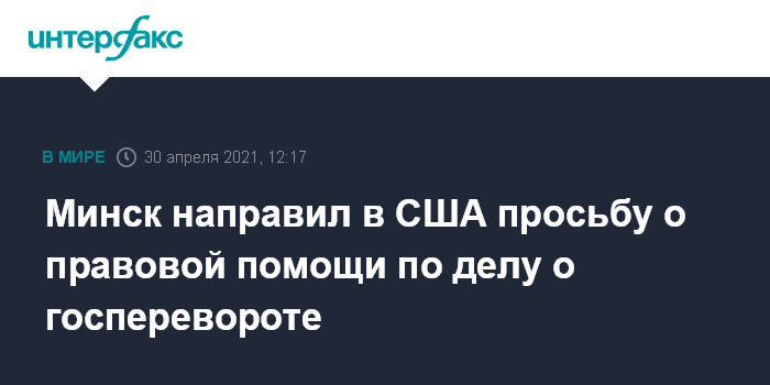 Минск направил в США просьбу о правовой помощи по делу о госперевороте