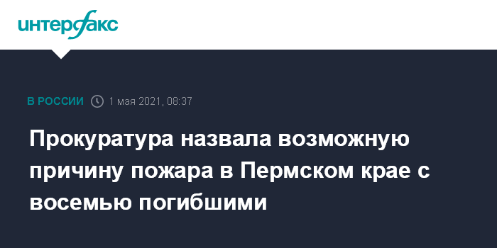 "По предварительной информации, 1 мая пожар возник в результате неосторожного обращения с огнем", - говорится в сообщении пресс-службы прокуратуры Пермского края.