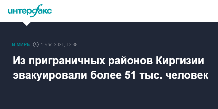Москва. 1 мая. INTERFAX.RU - Более 51 тысячи граждан Киргизии эвакуированы из зоны приграничного конфликта с Таджикистаном, сообщила в субботу "Интерфаксу" пресс-секретарь Баткенской областной администрации Чолпон Бердикулова.