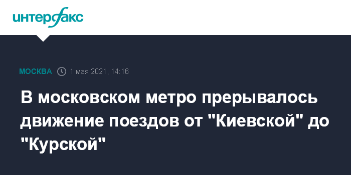 Москва. 1 мая. INTERFAX.RU - В московском метро прерывалось движение поездов от станции "Киевская" до "Курской" Арбатско-Покровской линии, сообщает департамент транспорта Москвы в своем телеграм-канале в субботу.