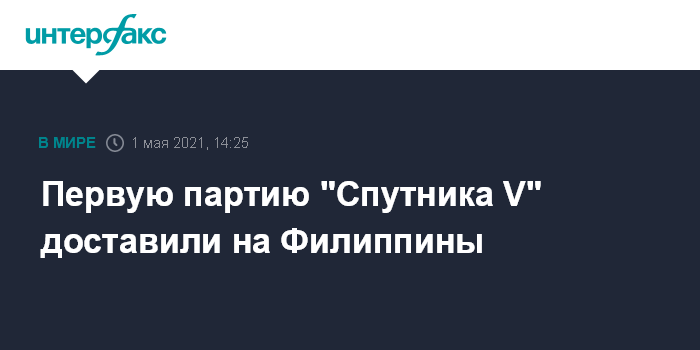 Москва. 1 мая. INTERFAX.RU - Власти Филиппин в субботу получили первую партию российской вакцины "Спутник V", сообщает CNN Philippines.