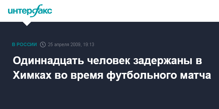 Москва. 25 апреля. ИНТЕРФАКС-ЦЕНТР - Во время матча чемпионата России по футболу между командами "Динамо" (Москва) и "Крылья Советов" (Самара), который проходил в субботу в подмосковном городе Химки, задержаны 11 человек, сообщили "Интерфаксу" в управлении информации и общественных связей ГУВД Московской области.