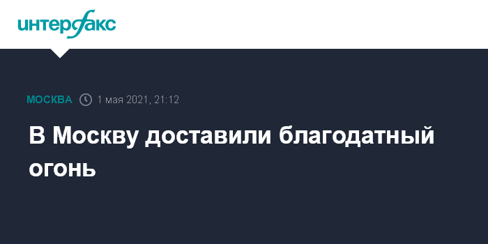 Москва. 1 мая. INTERFAX.RU - Благодатный огонь из Иерусалима в субботу около девяти часов вечера доставлен в Москву, сообщили "Интерфаксу" в делегации Фонда Андрея Первозванного.