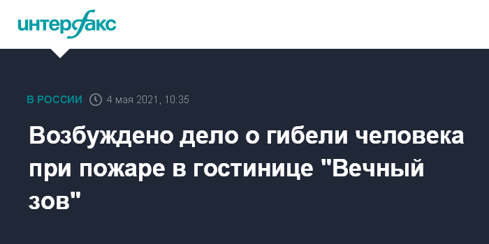 Возбуждено дело о гибели человека при пожаре в гостинице "Вечный зов"