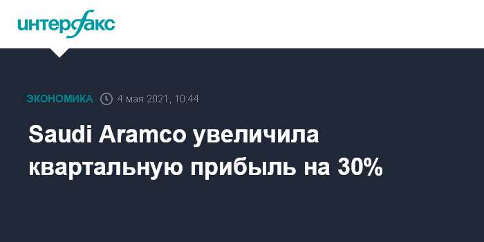 Москва. 4 мая. INTERFAX.RU - В I квартале 2021 года чистая прибыль нефтяной компании Saudi Aramco выросла на 30% в годовом исчислении и составила $21,7 млрд.