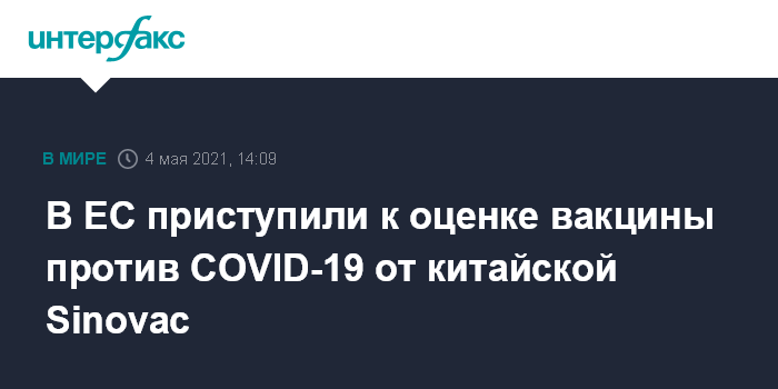 Москва. 4 мая. INTERFAX.RU - Комитет по медикаментам для человека европейского регулятора EMA начал рассмотрение вакцины против COVID-19 от китайской компании Sinovac. Об этом говорится в заявлении регулятора, распространенном во вторник.