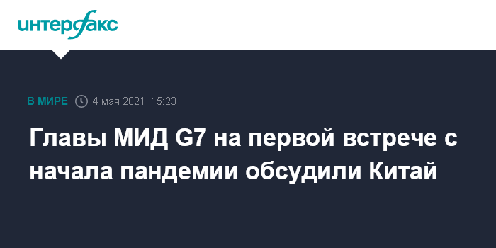 Москва. 4 мая. INTERFAX.RU - Первая встреча глав МИД G7 с начала пандемии была посвящена обсуждению общих позиций по отношению к Китаю, сообщают европейские СМИ.