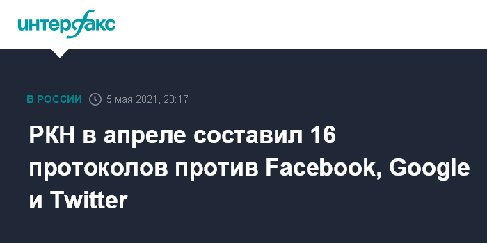 РКН в апреле составил 16 протоколов против Facebook, Google и Twitter