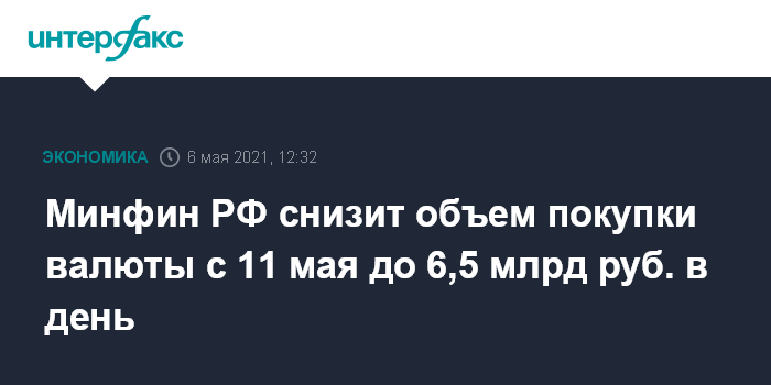 Минфин РФ снизит объем покупки валюты с 11 мая до 6,5 млрд руб. в день