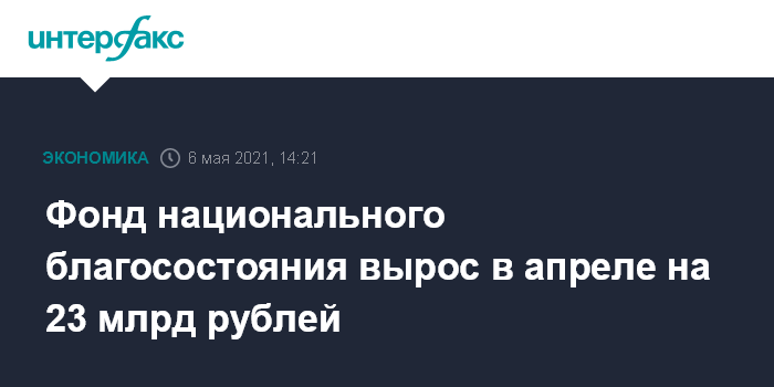 На 1 апреля объем фонда составлял 13 трлн 802,12 млрд рублей, или 11,9% прогнозного ВВП на 2021 год, что эквивалентно $182,32 млрд. Таким образом, за апрель его объем увеличился на 23,3 млрд рублей.