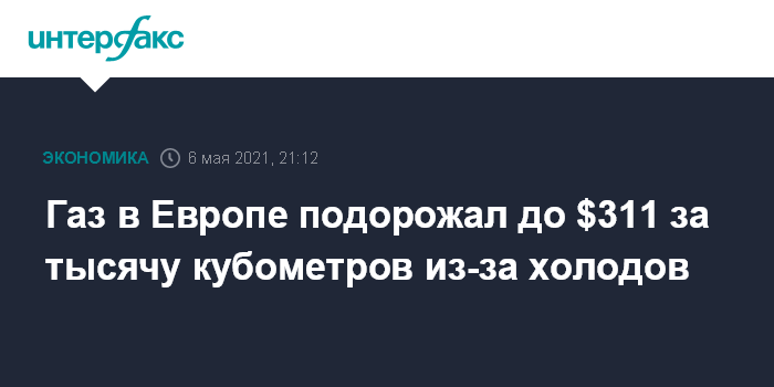 С начала года средняя цена контракта "на день вперед" на TTF составила $240 за тысячу кубометров. В бюджет "Газпрома" на 2021 год заложена средняя цена экспорта газа в дальнее зарубежье в $170 за тысячу кубов. Более 80% продаж "Газпрома" в Европу сейчас осуществляются по спотовым индексам разного временного базиса.