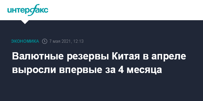 Москва. 7 мая. INTERFAX.RU - Валютные резервы Китая, крупнейшие в мире, в апреле увеличились впервые за четыре месяца - на $28,15 млрд.