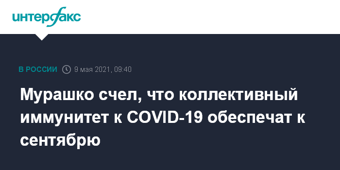 Москва. 9 мая. INTERFAX.RU - Вакцинация от COVID-19 в РФ идет планово, коллективный иммунитет удастся обеспечить в сентябре, сообщил министр здравоохранения РФ Михаил Мурашко.