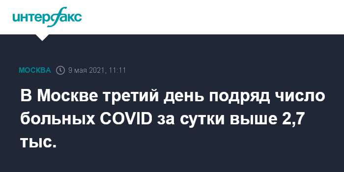 Москва. 9 мая. INTERFAX.RU - В Москве за последние сутки зафиксировали 2 828 случаев заболевания коронавирусом, следует из данных оперативного штаба по контролю ситуации с COVID-19.